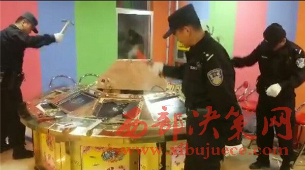16時(shí)整,城關(guān)公安分局治安管理一大隊(duì)的警員沖進(jìn)幻影游藝城,當(dāng)場控制各類參賭人員30余人、賭博管理人員十余人,查獲各類熊貓機(jī)、釣魚機(jī)、單挑機(jī)等涉賭機(jī)器72臺(tái),繳獲賭資現(xiàn)金近五萬元。警員在履行執(zhí)法手續(xù)后,對72臺(tái)涉賭機(jī)器進(jìn)行現(xiàn)場銷毀,執(zhí)法有序進(jìn)行,未損壞其他無關(guān)設(shè)備設(shè)施。