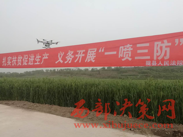 普樂塬村是隴縣法院幫扶的貧困村,針對村內青壯年大多外出打工,勞動力不足的情況,為確保小麥高產,減輕村民負擔,同時引導大家關注科技種田,轉變思維方式,經法院駐村第一書記路云多方聯(lián)系,隴縣法院花費3萬元,租用無人機免費為普樂塬村噴灑農藥。預計用2天時間為全村2000畝小麥進行防蟲霉菌預防,同時也邀請縣農機推廣中心對藥品質量進行全程監(jiān)督。