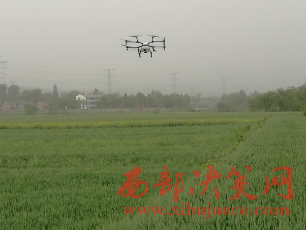 西部決策網-西部大開發(fā)(帥華鋒 李海瑞 通訊員 張蕾)5月5日上午9點,微風拂面、麥浪輕翻,6臺植保無人機正在隴縣東風鎮(zhèn)普樂塬村的麥田上空作業(yè),飛行在距離小麥80公分處均勻地噴灑農藥。