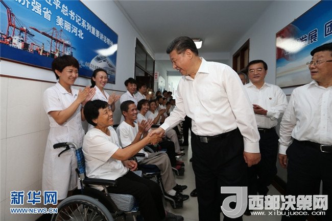 2016年7月28日,中共中央總書記、國家主席、中央軍委主席習(xí)近平到河北唐山市調(diào)研考察。這是習(xí)近平在唐山市截癱療養(yǎng)院看望慰問截癱傷員。 新華社記者 蘭紅光 攝