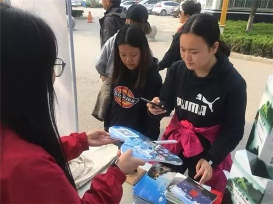 營銷中心工作人員耐心細(xì)致地幫助游客參與活動(dòng)