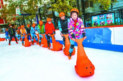 校園季節(jié)性冰場自11月19日至次年2月底使用。東城區(qū)教委副主任段勇介紹:“遇到天氣轉(zhuǎn)暖,冰場還會(huì)采取搭蓋遮陽棚等方式,盡量延長使用時(shí)間。”該區(qū)提供配套的基礎(chǔ)滑冰、冰上排舞、隊(duì)列滑、花滑等豐富的冰上課程。史家小學(xué)分校校長高滿洪說:“一年級至六年級的冰上課程都以基礎(chǔ)課程為主,暫時(shí)不分級,主要是要讓孩子們能夠在真冰上滑起來。”每塊冰場預(yù)計(jì)能覆蓋萬余人次,輻射周邊學(xué)校。
