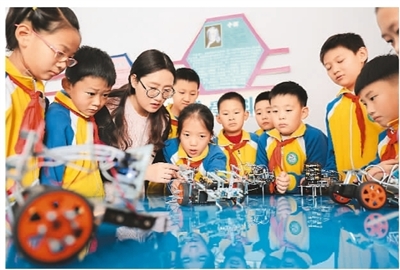 河北省承德市營子區(qū)濱河路小學(xué)將機(jī)器人編程課引入學(xué)校,安排專業(yè)教師指導(dǎo)學(xué)生進(jìn)行機(jī)器人編程、機(jī)器人設(shè)計等學(xué)習(xí),讓學(xué)生零距離感受科技的魅力,激發(fā)創(chuàng)新意識和科學(xué)探索精神。圖為11月27日學(xué)校教師指導(dǎo)學(xué)生練習(xí)操作機(jī)器人。劉環(huán)宇攝(新華社發(fā))