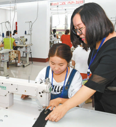 河曲縣開(kāi)展全民技能提升培訓(xùn),老師指導(dǎo)學(xué)員加工服裝。 |