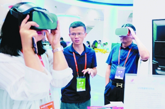 7月5日第二十屆中國海外學子創(chuàng)業(yè)周上,觀眾體驗VR產(chǎn)品(圖源:新華社)