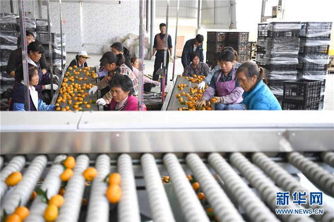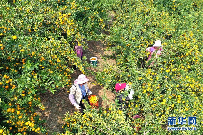 時下正是廣西鹿寨縣平山鎮(zhèn)數(shù)萬畝柑桔成熟上市的季節(jié)。據(jù)悉,2018年平山鎮(zhèn)柑桔產(chǎn)值3.29億元,隨著當?shù)馗探鄯N植面積不斷擴大,柑桔產(chǎn)業(yè)成為村民脫貧致富的重要產(chǎn)業(yè)。 新華社記者 周華 攝