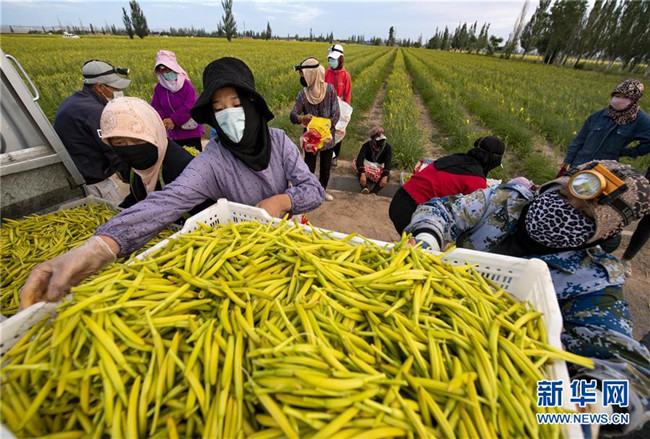 近日,寧夏鹽池縣惠安堡鎮(zhèn)的黃花菜進(jìn)入采摘季,從空中望去,成片的黃花菜地碧波萬頃。近年來,鹽池縣將黃花菜產(chǎn)業(yè)作為脫貧攻堅(jiān)的特色產(chǎn)業(yè),依托滴灌等技術(shù)擴(kuò)大種植規(guī)模,培育專業(yè)合作社、深加工企業(yè),打造黃花菜產(chǎn)業(yè)鏈條。目前,鹽池縣黃花菜種植面積達(dá)8.1萬畝,產(chǎn)業(yè)年產(chǎn)值2.5億元,直接帶動(dòng)全縣3000多黃花菜種植戶戶均年增收2萬多元。在黃花菜40多天的采摘期內(nèi),每天還可帶動(dòng)1.5萬余人務(wù)工增收。