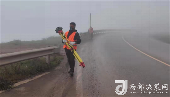 在進(jìn)行二等水準(zhǔn)測(cè)量時(shí),進(jìn)出口聯(lián)測(cè)距離為50千米,不僅要面對(duì)國(guó)道上龐大的車流量,還要面對(duì)盤山路的大坡度、大霧的低能見(jiàn)度、突然來(lái)襲的雨雪天氣以及雨雪過(guò)后的低溫。二等水準(zhǔn)的測(cè)量方式是步行,因?yàn)槭歉咴?,所以體力消耗特別大,山里又沒(méi)有吃飯的地方,大家只能靠隨身攜帶的面包、開水保證體能。然而即使面對(duì)如此困難的環(huán)境,大家依然不忘初心,按時(shí)完成了復(fù)測(cè)任務(wù)。
