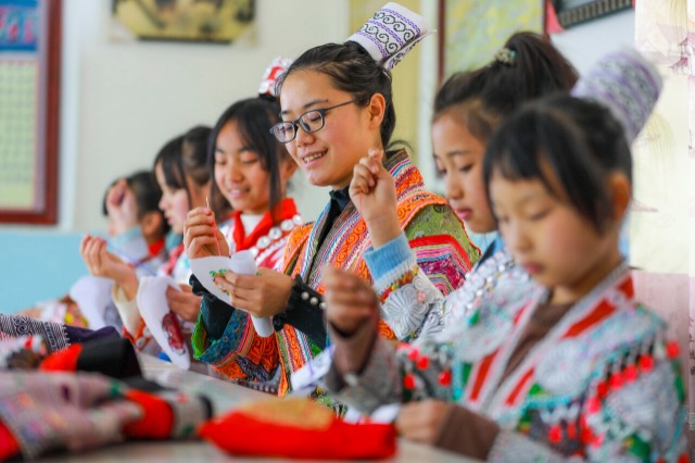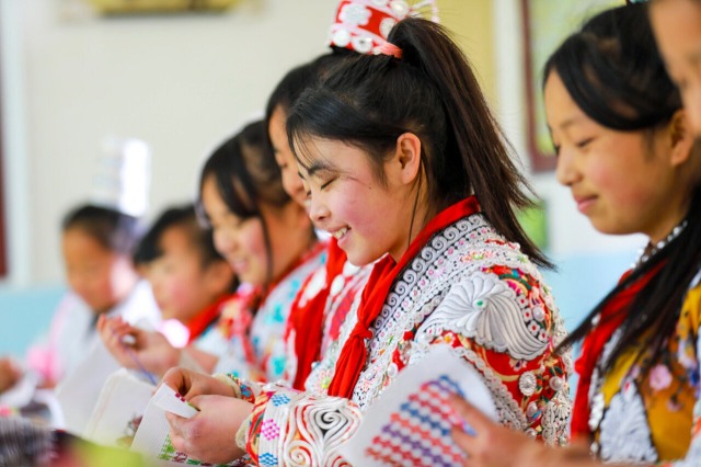 近年來,貴州省黔西市新仁苗族鄉(xiāng)折溪小學(xué)積極推動優(yōu)秀非遺文化進(jìn)課堂,選任學(xué)校精通刺繡、蠟畫、蠟染的教師指導(dǎo)學(xué)生學(xué)習(xí),讓苗族孩子們“零距離”接觸非遺技藝,弘揚和傳承民族優(yōu)秀傳統(tǒng)文化。中國教育報-中國教育新聞網(wǎng)通訊員 周訓(xùn)超 攝