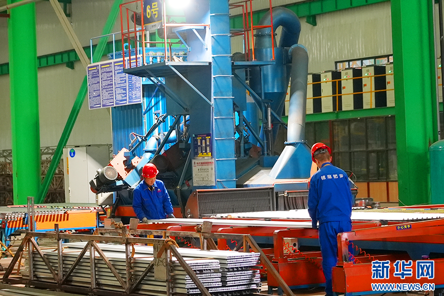 11月15日,在銅川市董家河循環(huán)經(jīng)濟(jì)產(chǎn)業(yè)園,銘帝集團(tuán)有限公司鋁合金生產(chǎn)車(chē)間里兩名工人正在工作。新華網(wǎng) 楊喜龍 攝
